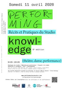 Cette journée dépliera les formats hybrides propres à Performer Les Savoirs, alliant différents ateliers de pratiques de studio avec le public, un temps de travail à la table “recherche in progress”, jeux (Le Jeu des Cartes du Retour) et des performances. Premier temps public du projet “En Studio”, cet événement propose de mettre en partage des pratiques du studio développées pour et par des artistes.