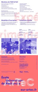 Le master ArTeC se déploie dans le cadre d’une École Universitaire de Recherche (EUR), financée par l’Agence Nationale de la Recherche (ANR).