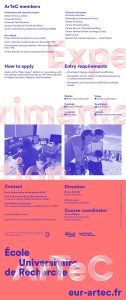 Le master ArTeC se déploie dans le cadre d’une École Universitaire de Recherche (EUR), financée par l’Agence Nationale de la Recherche (ANR).