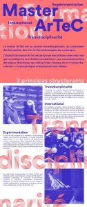 Le master ArTeC est un master transdisciplinaire, au croisement des humanités, des arts, et des technologies du numérique.