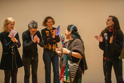 Bénédicte Alliot, directrice de la Cité internationale des arts, Fabienne Brugère, présidente de la ComUE UPL et Tiphaine Karsenti, directrice de l'EUR ArTeC, ouvrent les Rencontres ArTeC 2022.  Carmen Eugenia Gembuel présente l'université colombienne l'UAIIN.