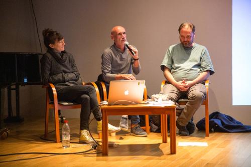 Présentation projet de recherche "Faire commun, faire recherche en quartiers populaires" Marie Preston, Pascal Nicolas-Le Strat & Nicolas Sidoroff exposent chacun leur objet d'études "déployer des histoires"