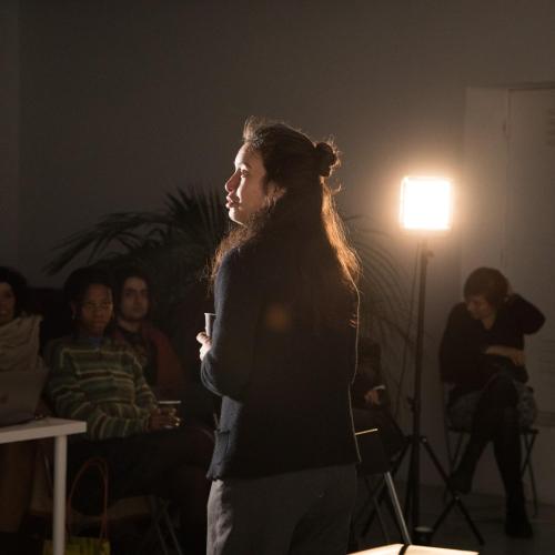 Mort·es-vivant·es, chambres d’hôtel, kinesthésie, simulacres ludiques, rêves, langues, territoires, lesbiennes, grands-parents, jardins, récits, mythologies, machines, fées, espaces domestiques, exils, rituels de soin, origines : la transdisciplinarité et ses multiples approches mettent en lumière les différentes manières d’articuler recherche et création, abordant la théorie depuis un espace d’exposition.